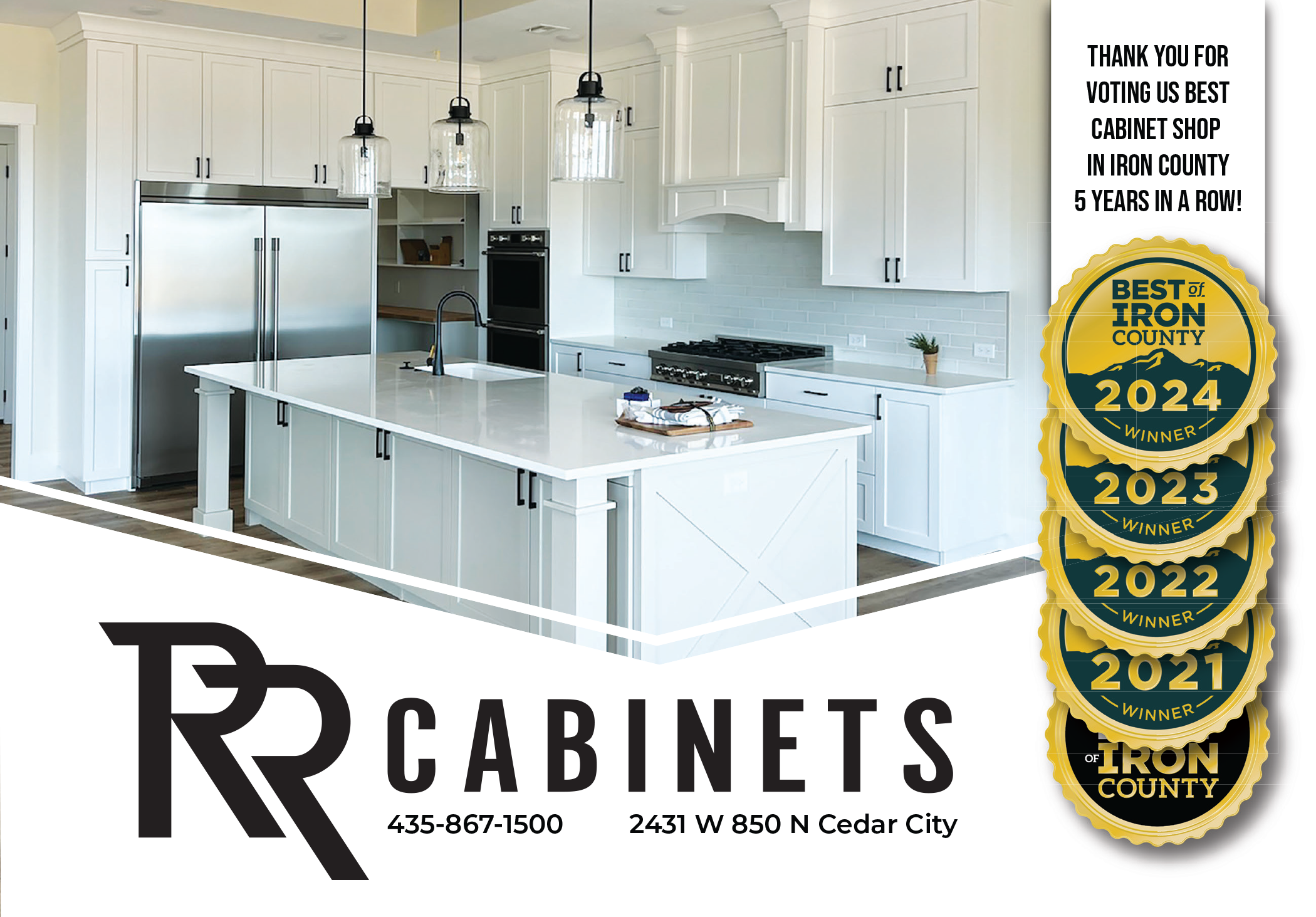 We are an award-winning team of cabinet makers with years of in-depth experience. It is our pride to say that we’re the winner of the Best of Iron County Award 2020, 2021, 2022, 2023 and 2024.